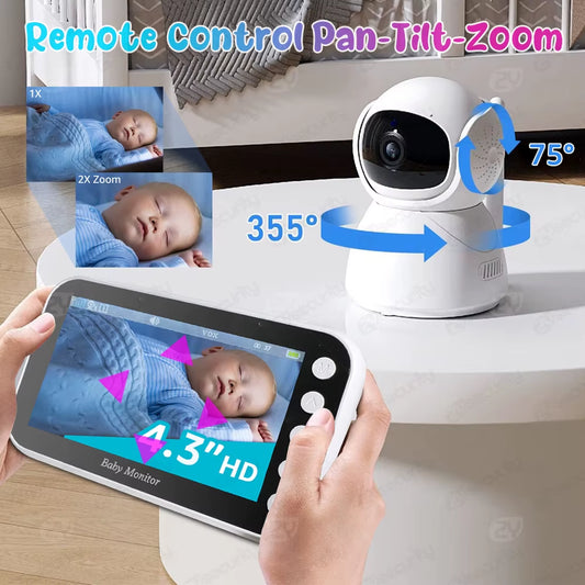 4.3"Baby Monitor with Camera Pan-Tilt-Zoom HD Babyphone 2000Mah Long Battery Life Mobile Baby Camera 2-Way Talk Night Vision VOX